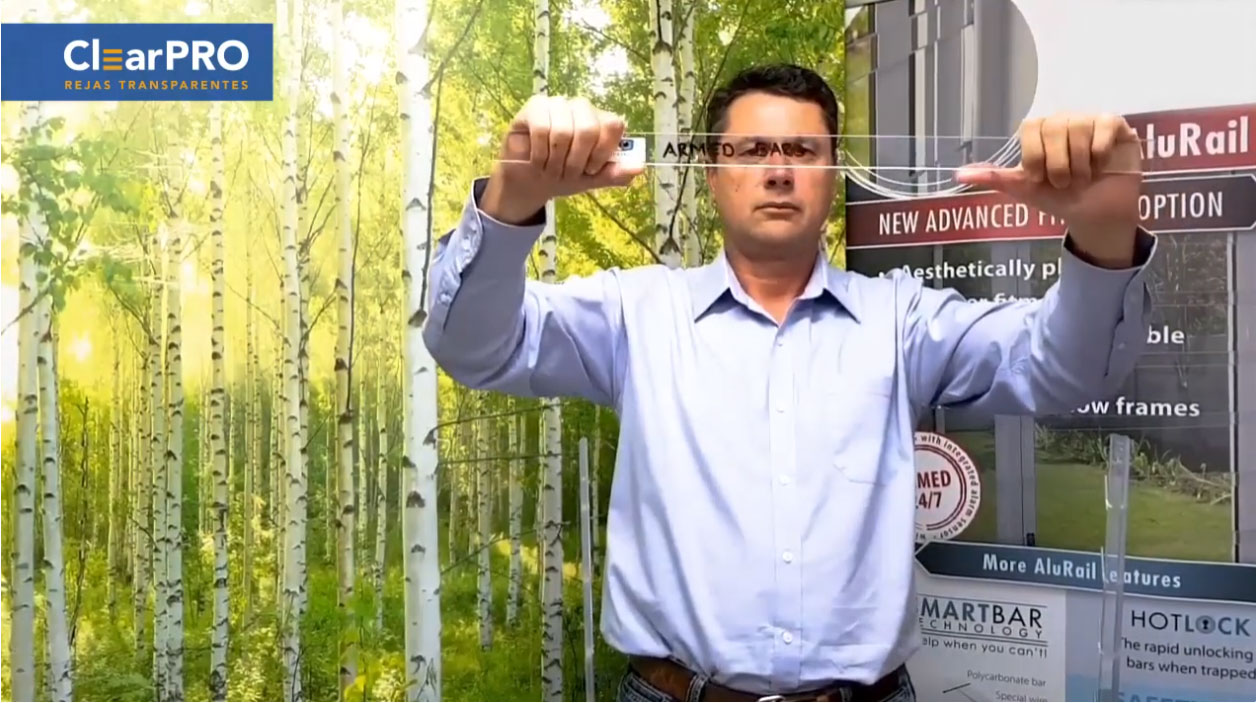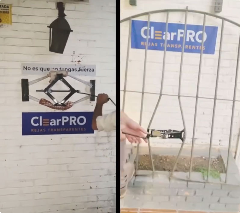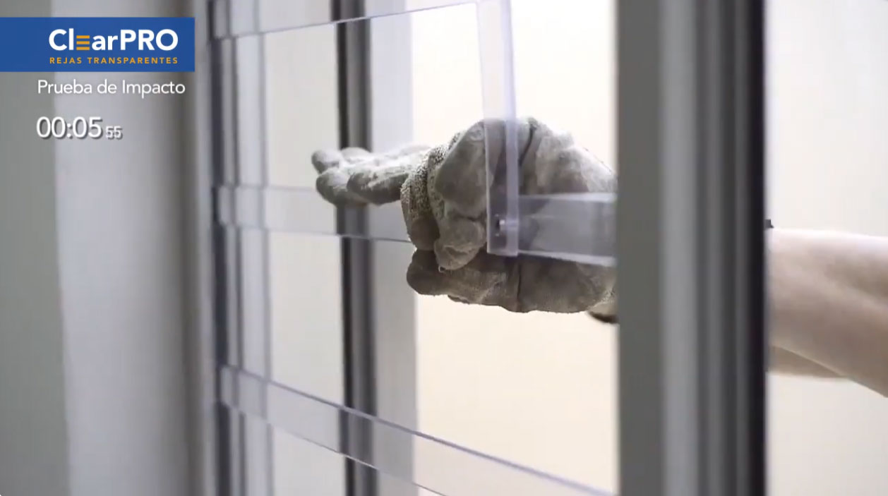 Romper un barrote de policarbonato podría llevar un tiempo similar al de romper una reja de hierro, dependiendo de la herramienta utilizada. Sin embargo, la gran diferencia es que los barrotes ClearPRO están diseñados con un sistema de seguridad integrado: al intentar romperlos, se activa una alarma, lo que alerta de inmediato sobre el intento de intrusión.